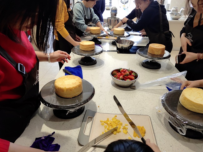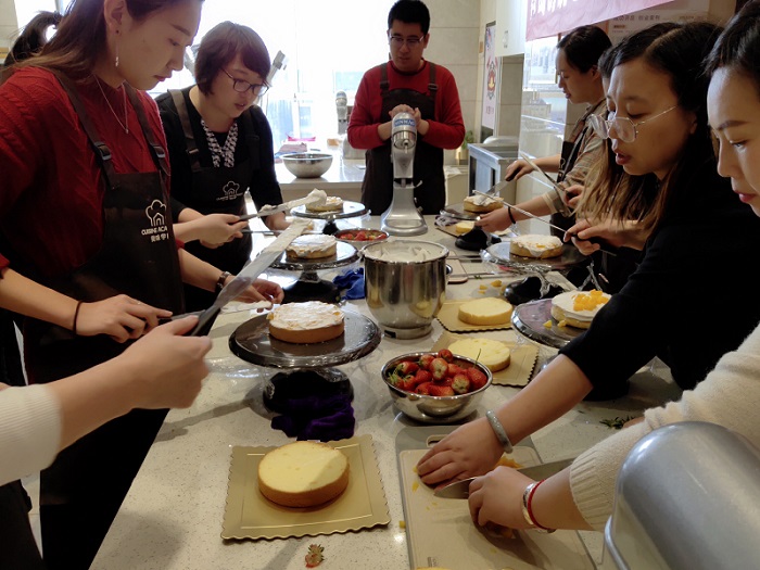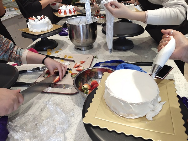At 1 pm, 16 goddesses gathered together and took their respective positions at two workstations. The cake bases and tools had already been neatly arranged. When the aprons were put on, the cake DIY activity officially kicked off. The cake teacher whipped up the cream first and gradually explained the making process, explaining while operating, allowing the Chuangrui goddesses to quickly get started. Whether it was the food experts or the novice cooks, they all looked very professional. Perhaps it was the innate talent of the goddesses, or perhaps it was the style of Chuangrui goddesses from their past work, which was swift and resolute.